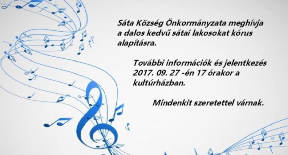 Sáta Község Önkormányzata meghívja a dalos kedvű sátai lakosokat kórus alapítására.