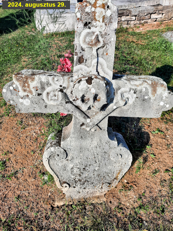 A sír a kápolna felőli, a ravatalozó mögött bejáraton közelíthető meg, a dombtetőn található a temetőben. A sírkőről (egyedi megjelenése miatt) az 1980-as évek végén vagy a ’90-es évek elején készítettem hagyományos, előhívásos módszerrel kidolgozott fényképet, amely alább látható. A fotó nem adta vissza felismerhetően a sírkő feliratát, ezért később kézírással rögzítettem azt.