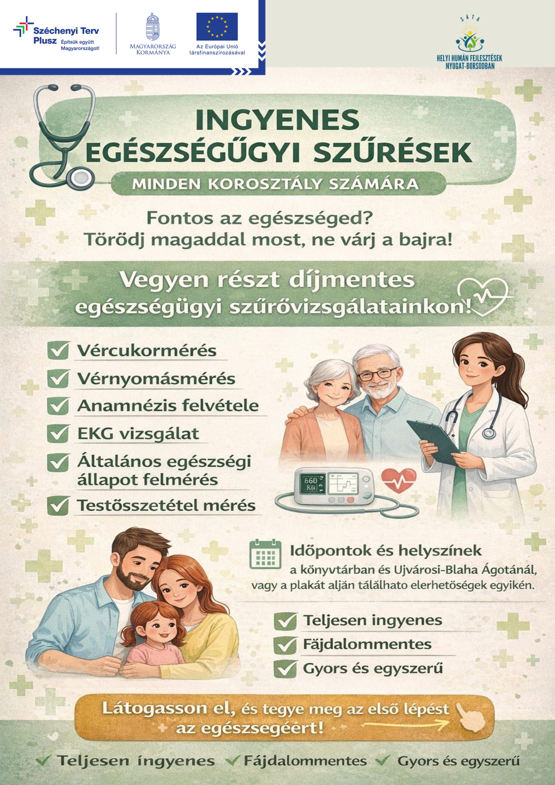 Szűrővizsgálatok „TOP_PLUSZ-3.1.3-23-BO1-2024-00003 Helyi humán szolgáltatások fejlesztése a Borsodi Hegyháton” projekt keretében